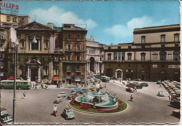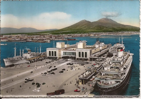 Two vintage postcards of Naples, Italy depicting: 1. Trento Square & the fountain ... 2. Marittims Station & Vesuvius. Both postcards are in good condition.