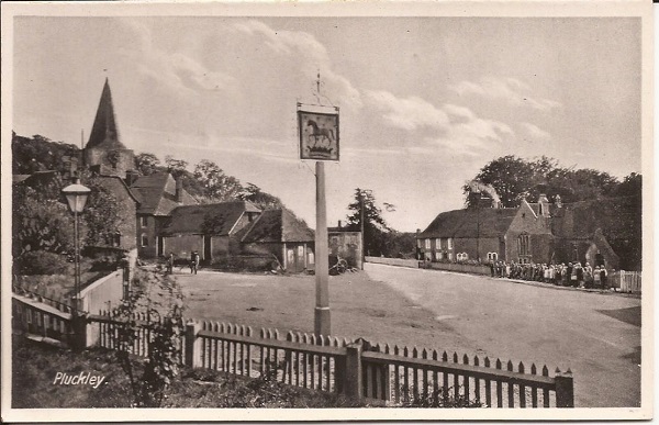 1.The Square ... 2. St. Nicholas Church ... 3. Post Office & Stores (please note this card has been posted) ... 4. Fir Toll ... 5. Northaw, Surrenden-Dering, Pluckley ... 6. Northaw, Surrenden-Dering, Pluckley ... 7. The Grove, Pluckley ... 8. The Avenue, Pluckley ... 9. Street view, Pluckley. The cards are all in very good condition with only one having been previously posted.