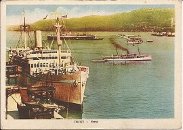 Four rare unposted postcards of Trieste, Italy depicting: 1. Porto ... 2. Trieste Panorama ... 3. Strada per Monfalcone ... 4. Piazza della Borsa. All postcards are in good condition.