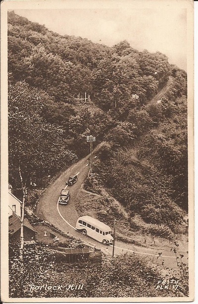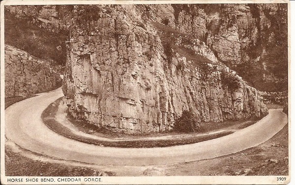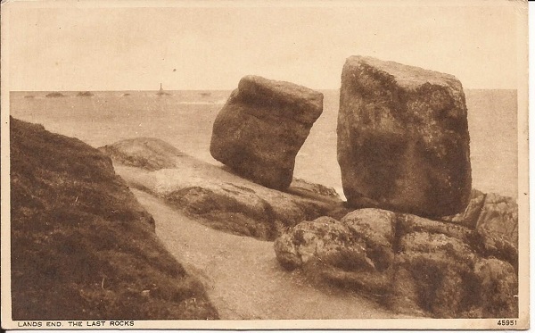 1. Lands End Cornwall ... 2. Lands End - the last rocks ... 3. Horse Shoe Bend, Cheddar Gorge ... 4. Porlock Hill. . All four postcards are in good condition.